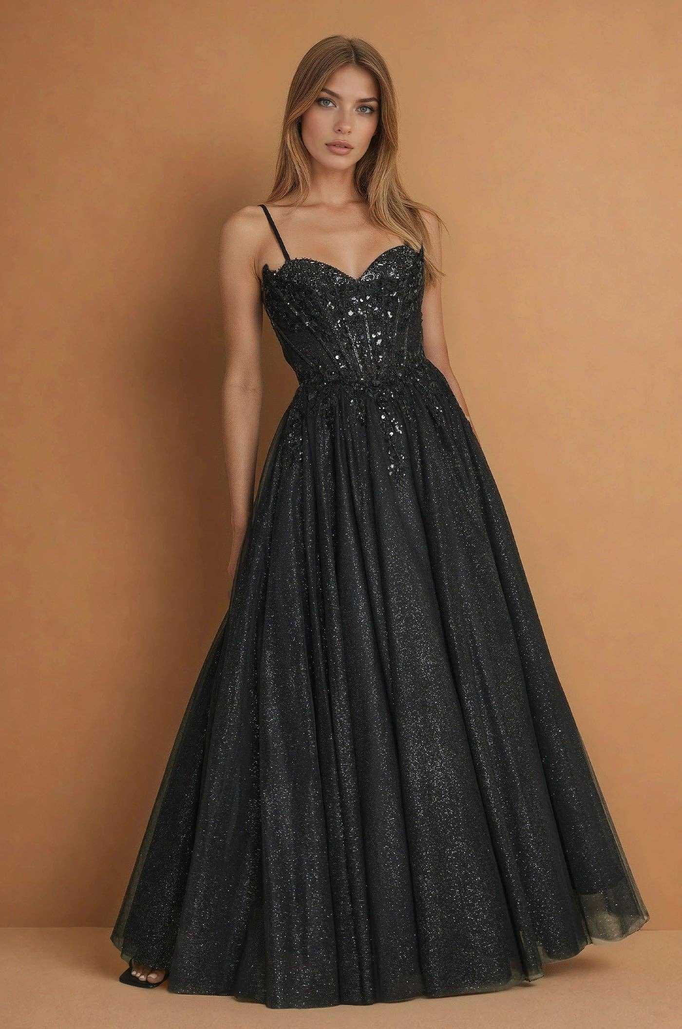 Step into a world of elegance with our black formal ball gown, designed to captivate at any occasion. This exquisite piece perfectly blends structured support with a soft, voluminous tulle skirt, ensuring you stand out elegantly.