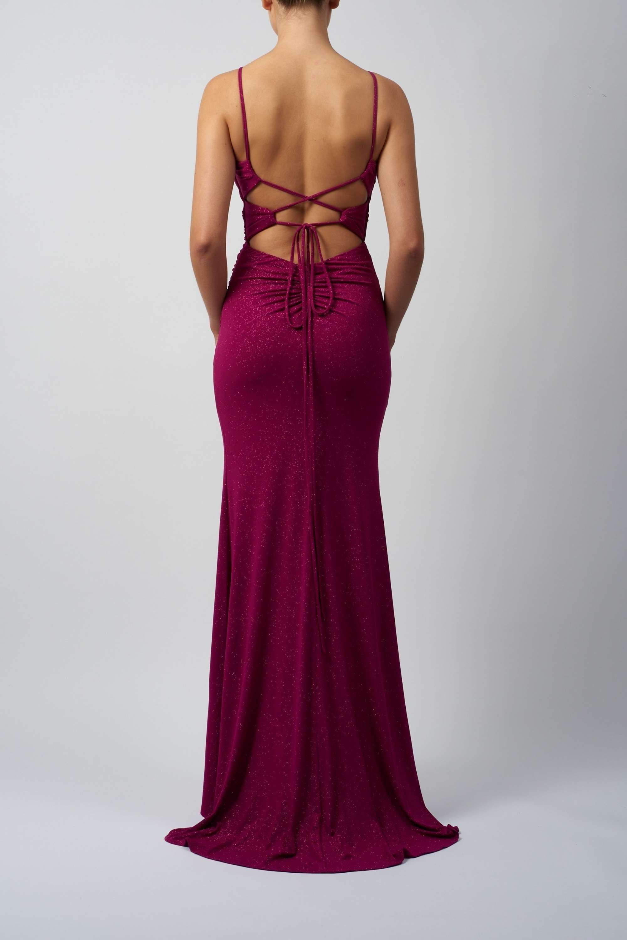 Designed by the renowned Mascara London, this dress features a chic tie-back design, allowing a fit that is as comfortable as it is breathtakingly elegant. The shimmering sequins adorn the floor-length silhouette, creating a dazzling effect with every step you take. The thoughtfully placed leg split adds a dash of allure, balancing classic elegance with a touch of modern flair.