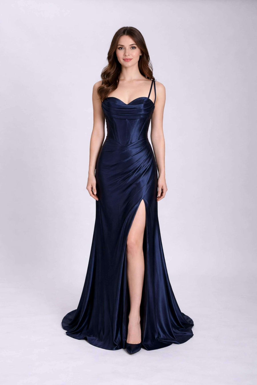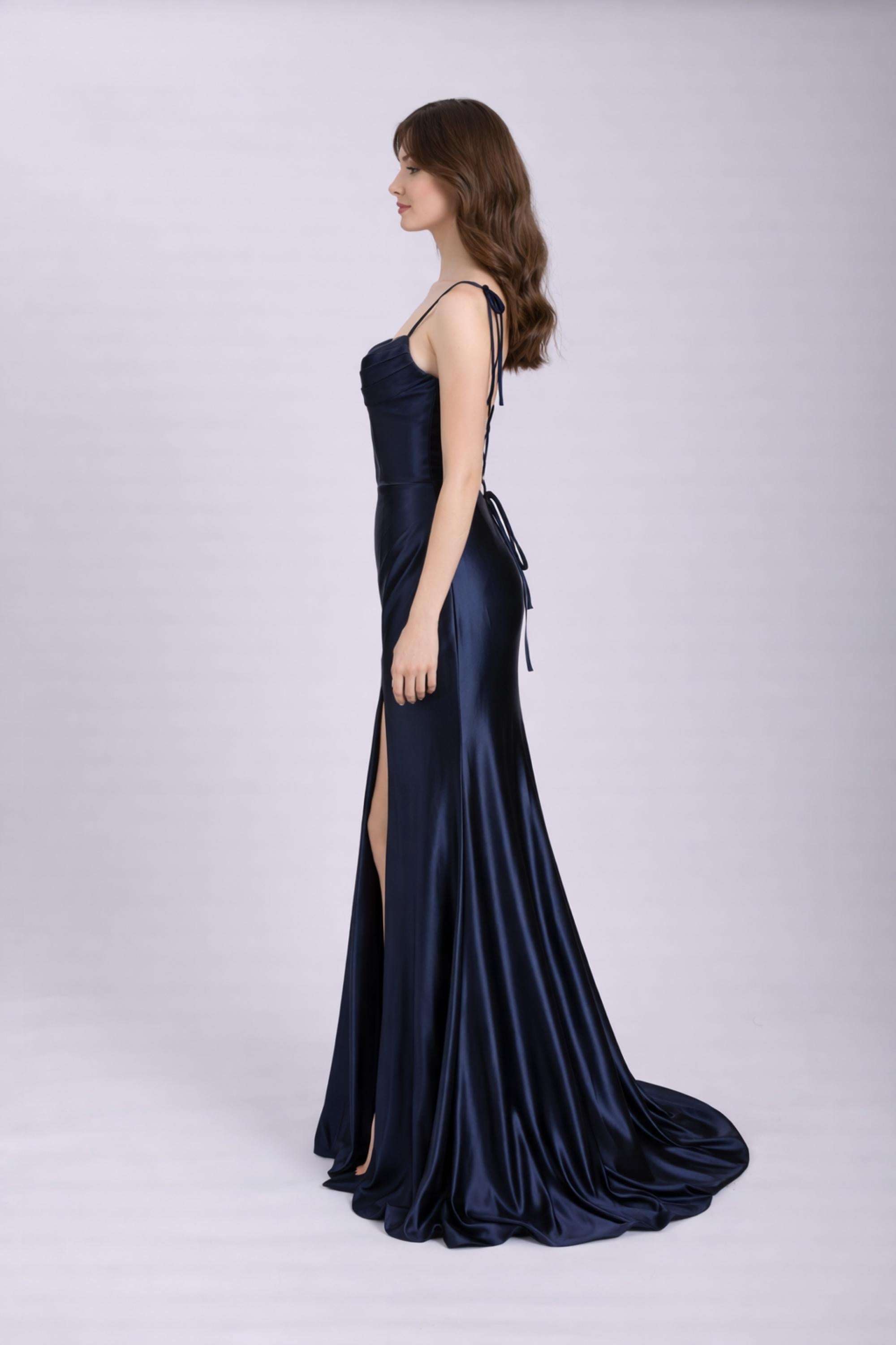 Crafted from premium satin, this prom dress feels as luxurious as it looks. The rich navy hue exudes depth and elegance, perfect for making a bold yet refined statement. Available in other stunning colors like Emerald Green, Wine, Lilac, and Royal Blue, so you can choose the shade that best expresses your style.