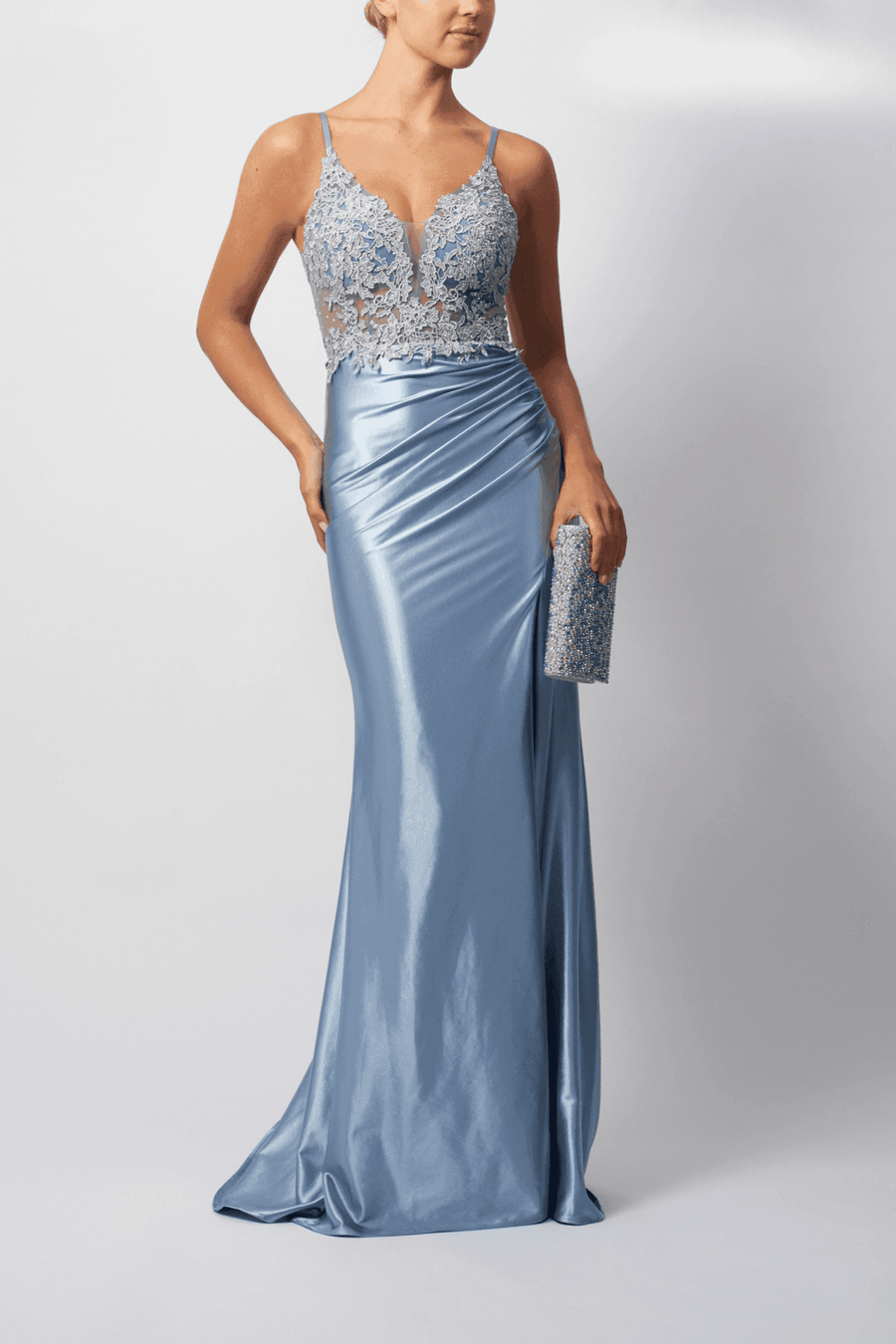 Mascara London MC12424 Steele Blue Fitted Prom Dress