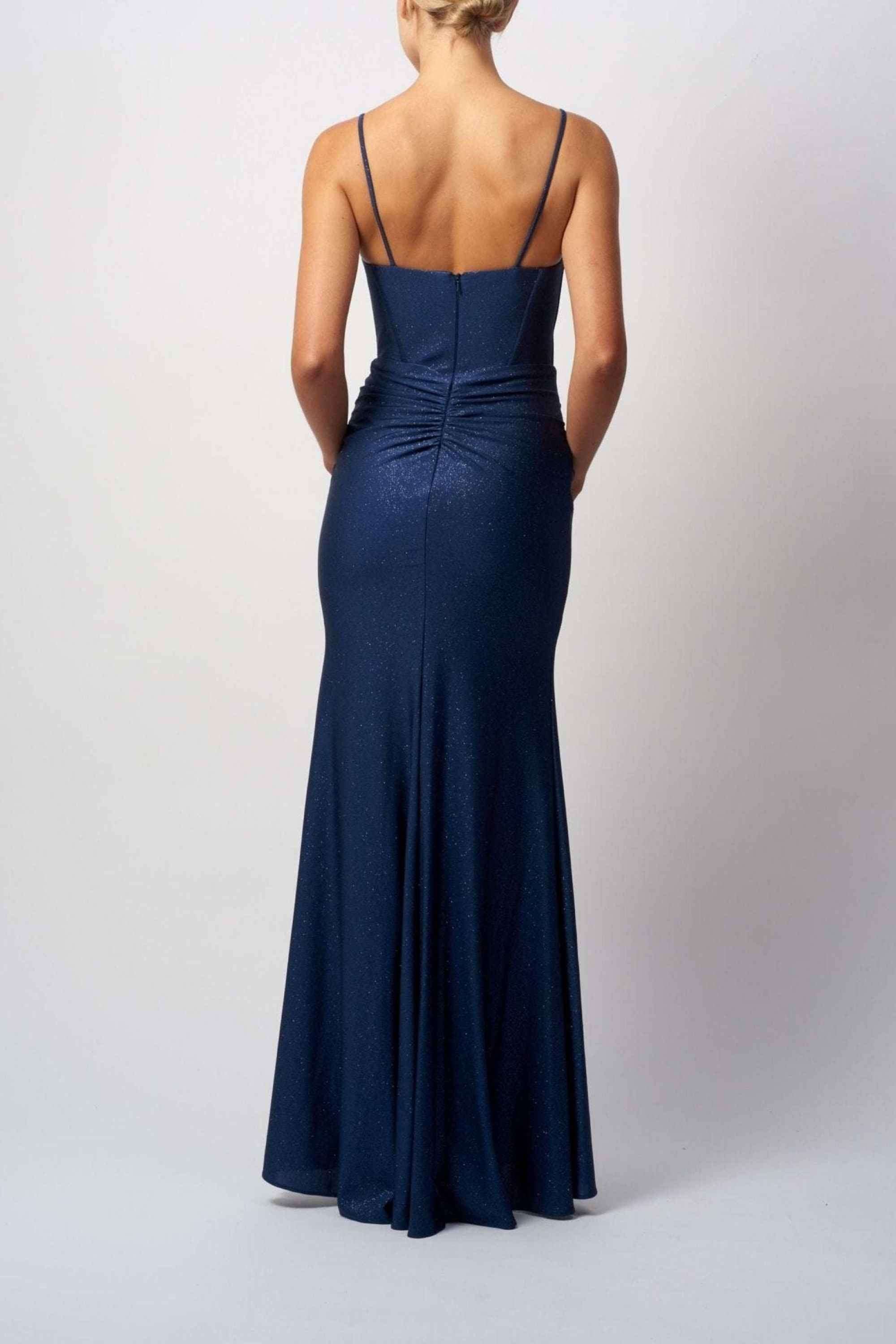 Elegant Airforce Blue Glitter Prom Dress with a flattering fitted silhouette