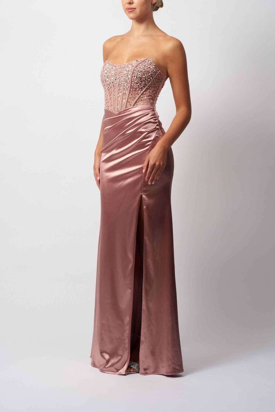 Floor-length design ideal for prom and formal occasions