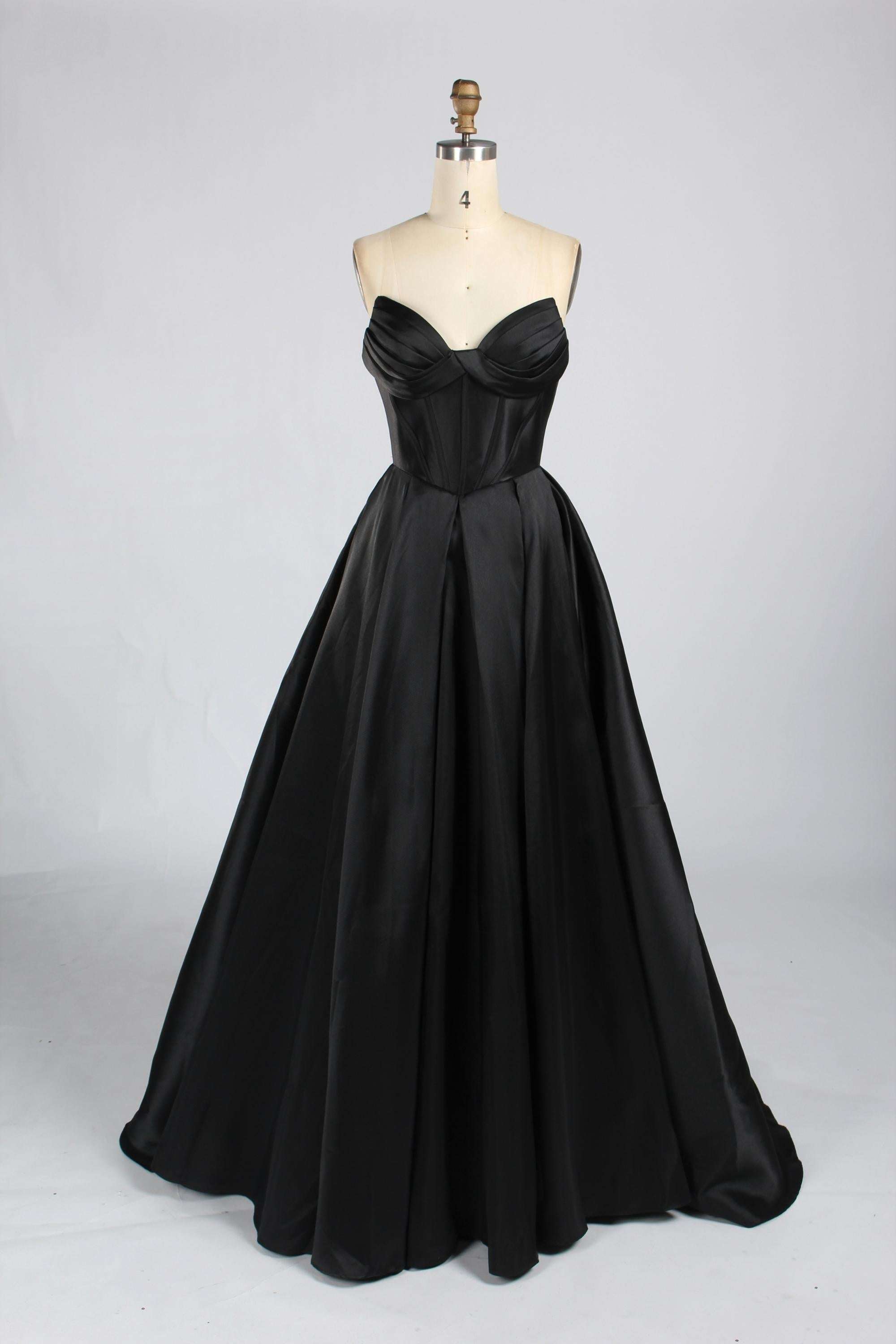 Jessica Stuart Black Satin Strapless Phoebe Prom Gown 33313B
