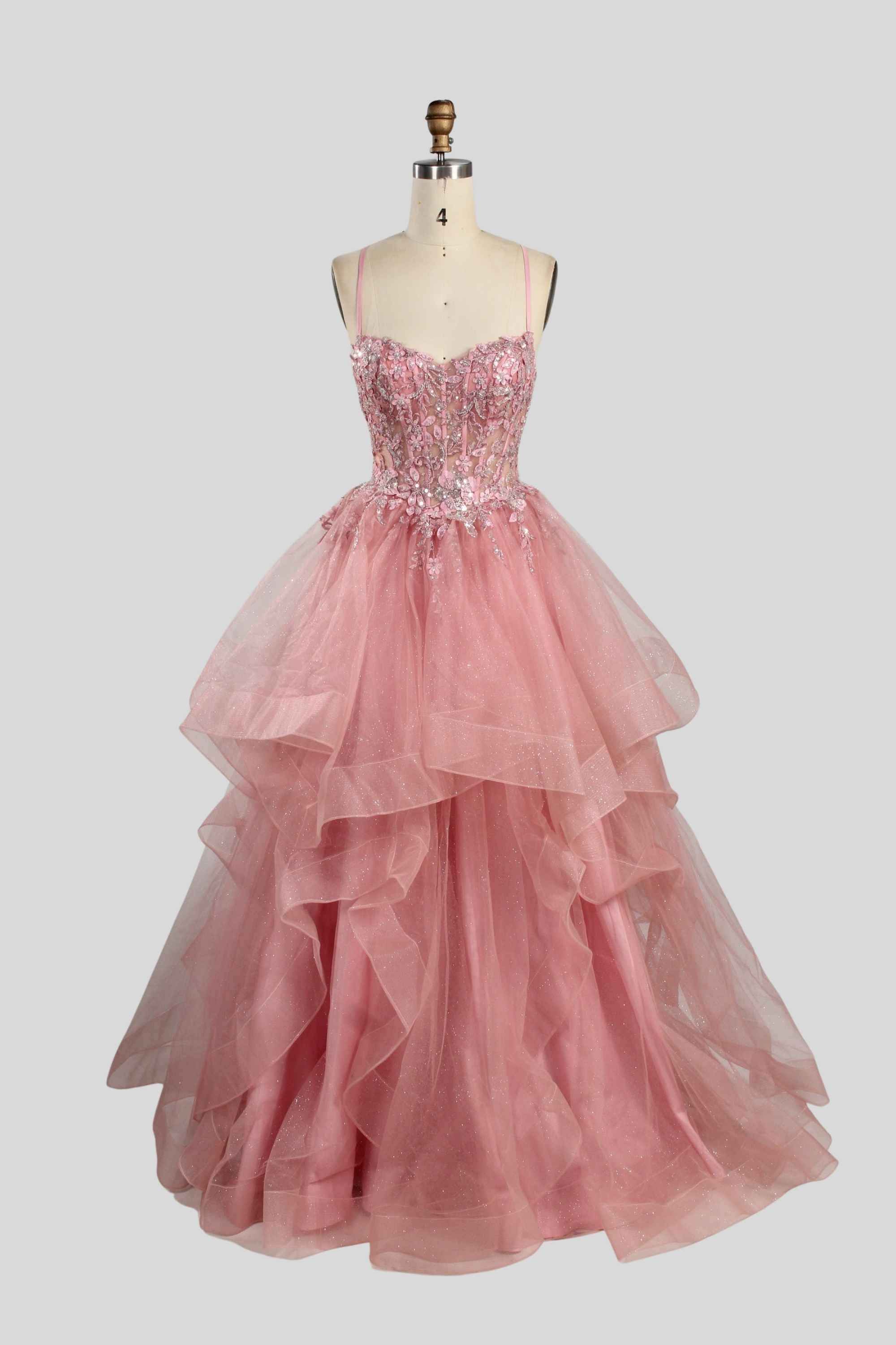 Step into the dreamlike elegance of the Jessica Stuart Hailey Ruffled Blush Ball Gown 33231. With its enchanting layers of cascading tiered ruffles, this gown is the epitome of sophistication and grace, perfect for creating unforgettable memories at your prom, quinceanera, or any grand celebration.