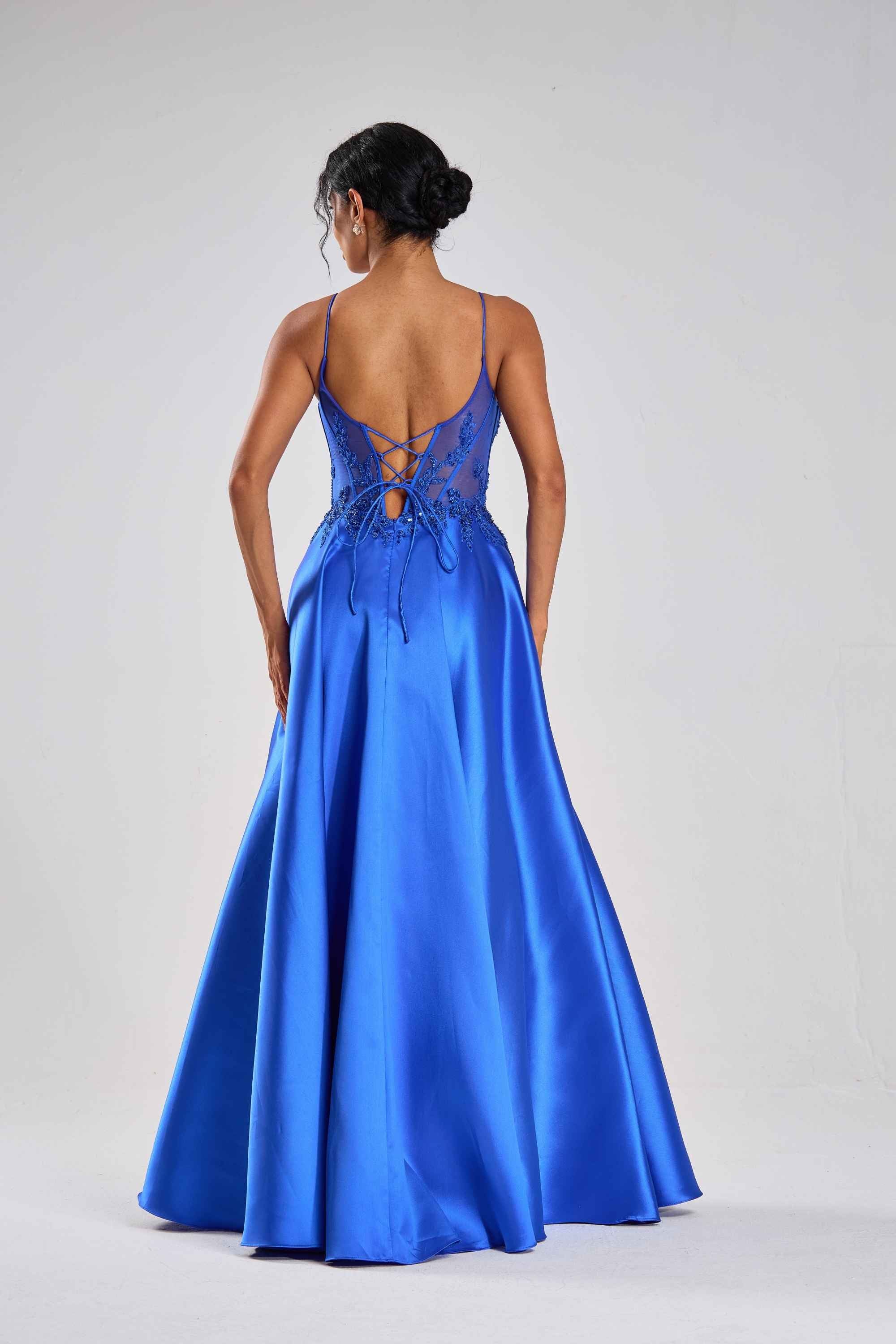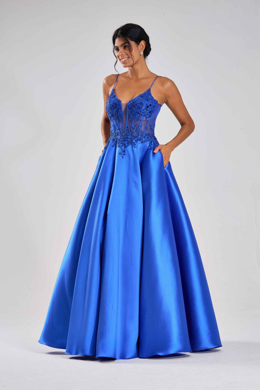 Portia Royal Blue Satin Ballgown by Jessica Stuart