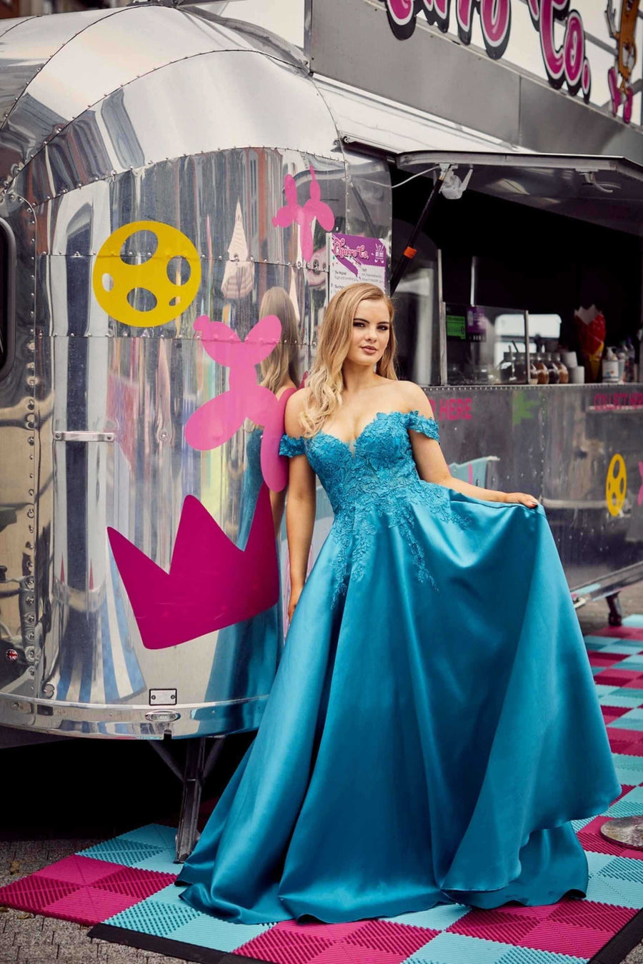 The Teal Ballgown features a structured bodice adorned with delicate lace that not only flatters your figure but also creates a timeless look. The voluminous satin skirt adds dramatic flair while allowing for graceful movement. This gown is perfect for your prom night, formal events, or any special occasion where you want to leave a lasting impression.