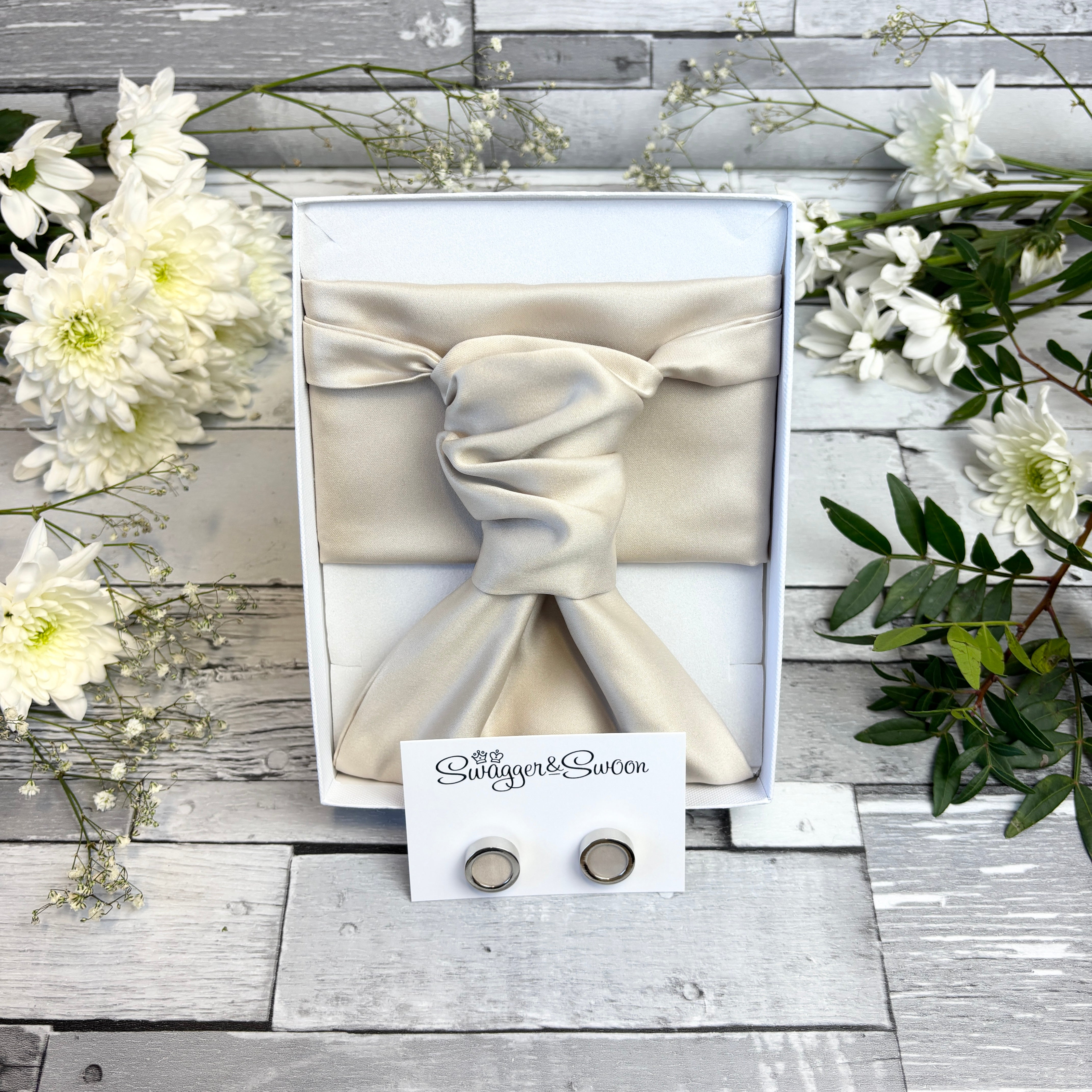 A plain, Antique Champagne coloured wedding cravat, the perfect accessory for the groom or groomsmen on your wedding day!