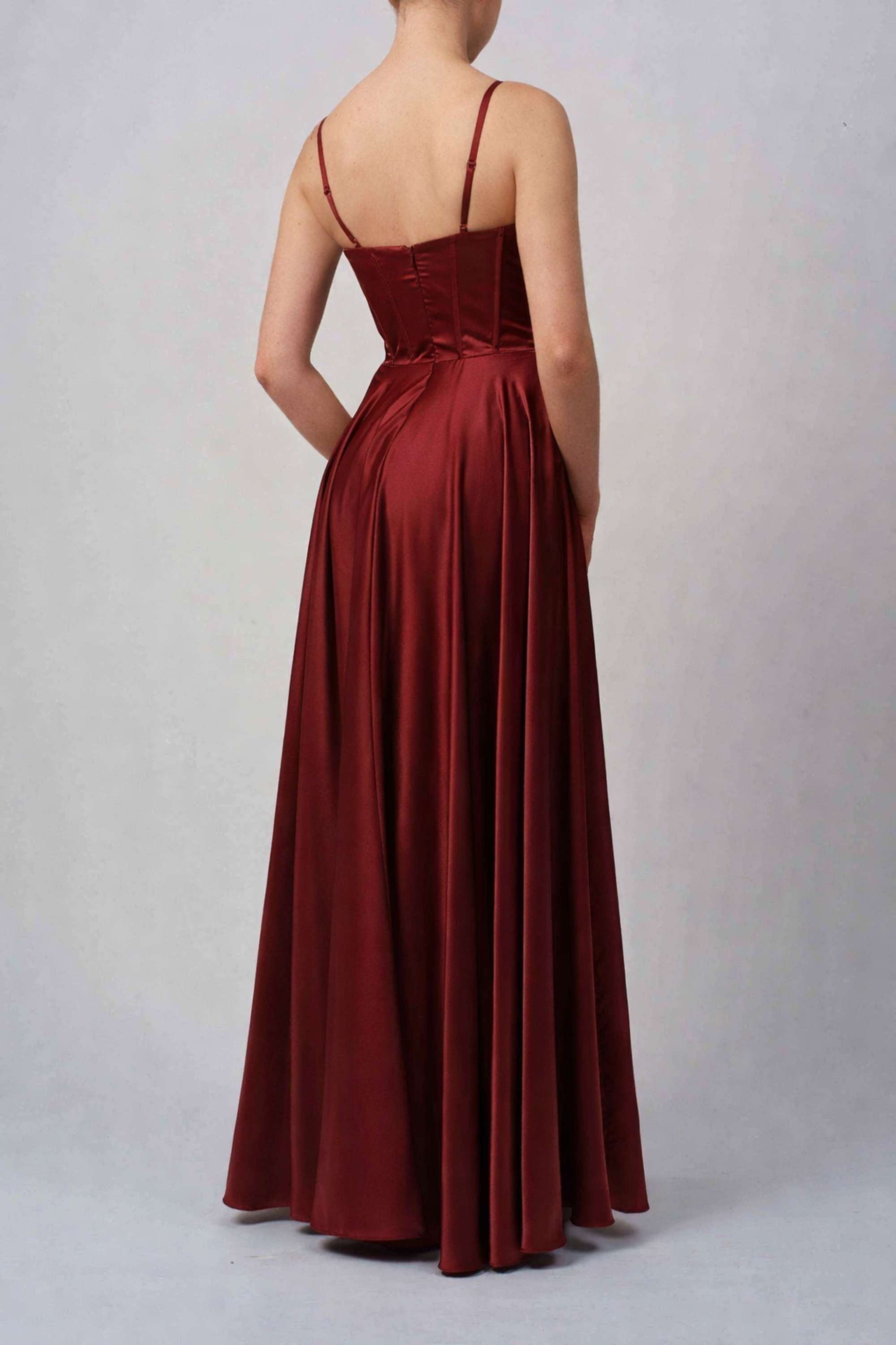 Mascara MC12314 Burgundy Satin Corset Prom Dress