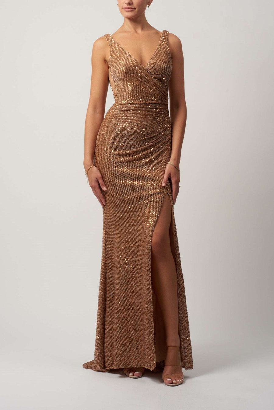 Bronzefarbene Pailletten-Mascara für formelle Kleidung MC18941 – Cargo-Kleidung