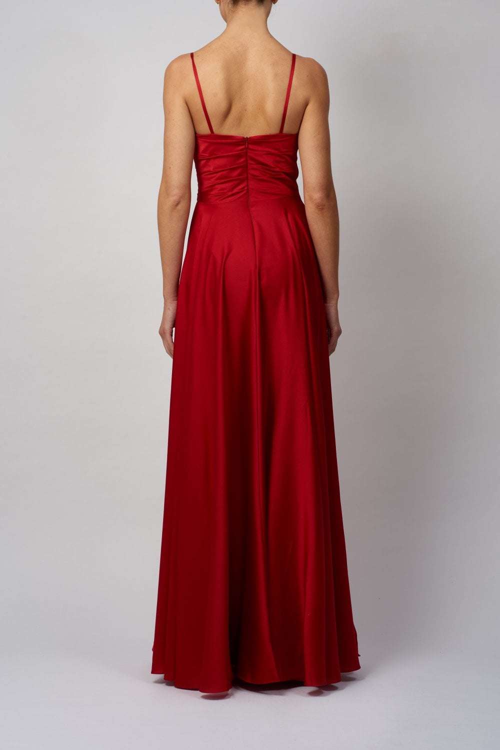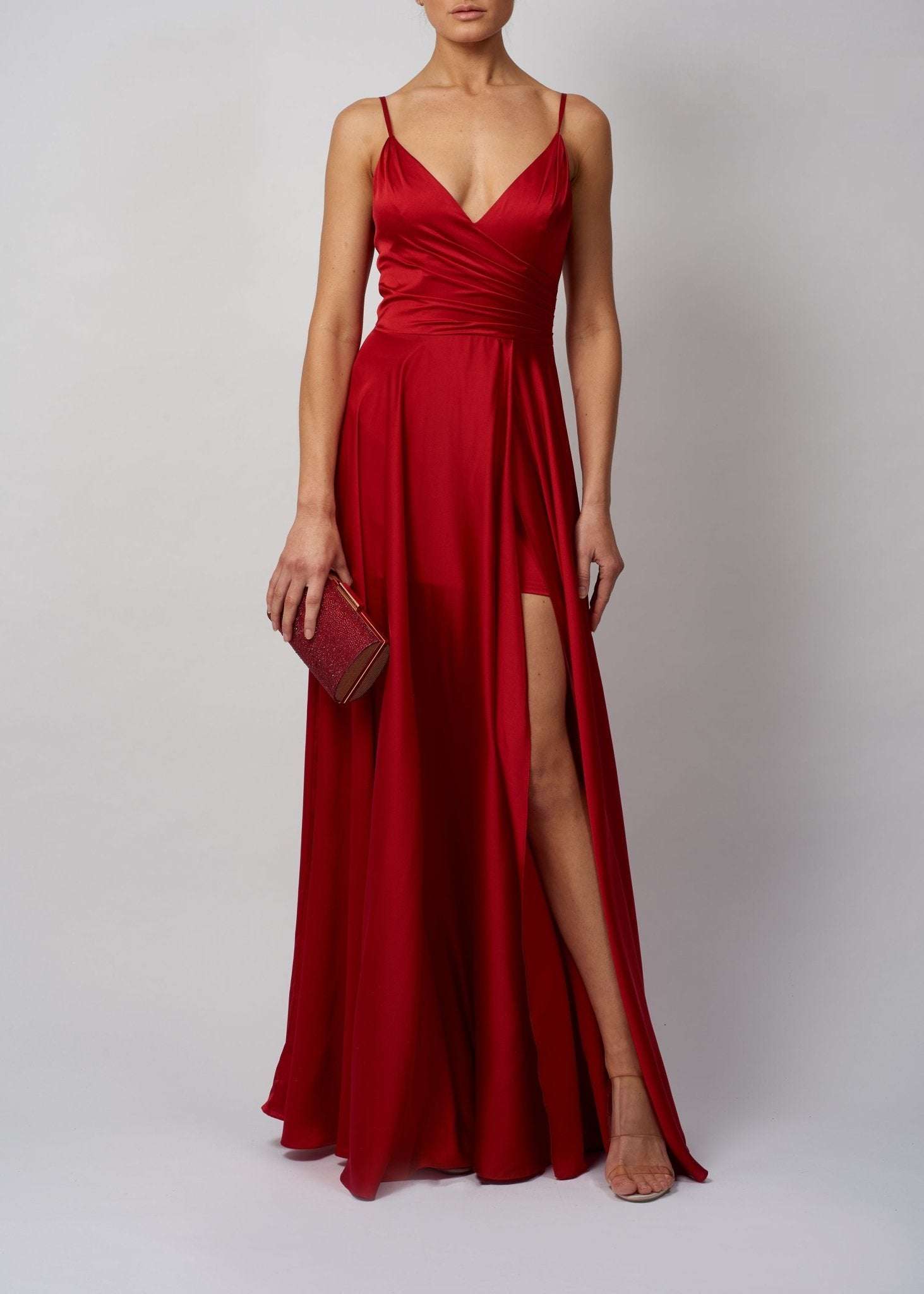 Weinrotes Satin-Falten-Abschlussballkleid MC220123