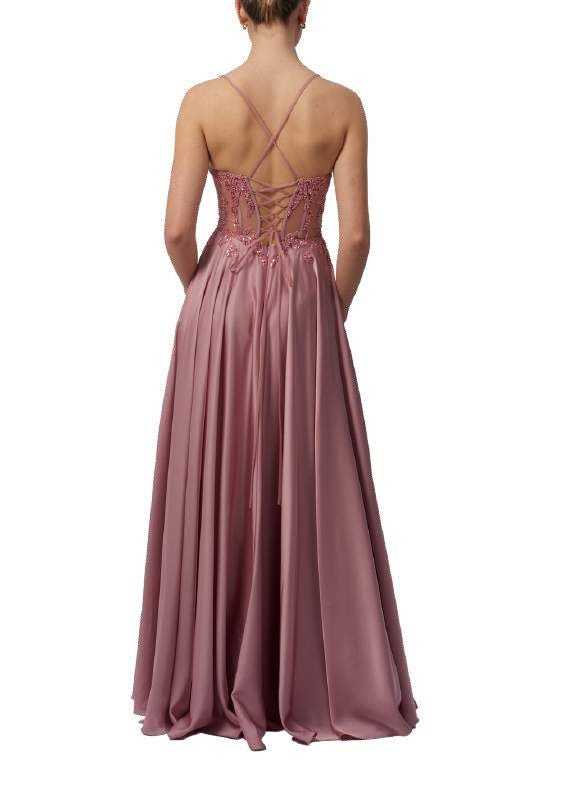 Mascara MC19342 – Blaugrünes Satinkleid mit Bindeband am Rücken