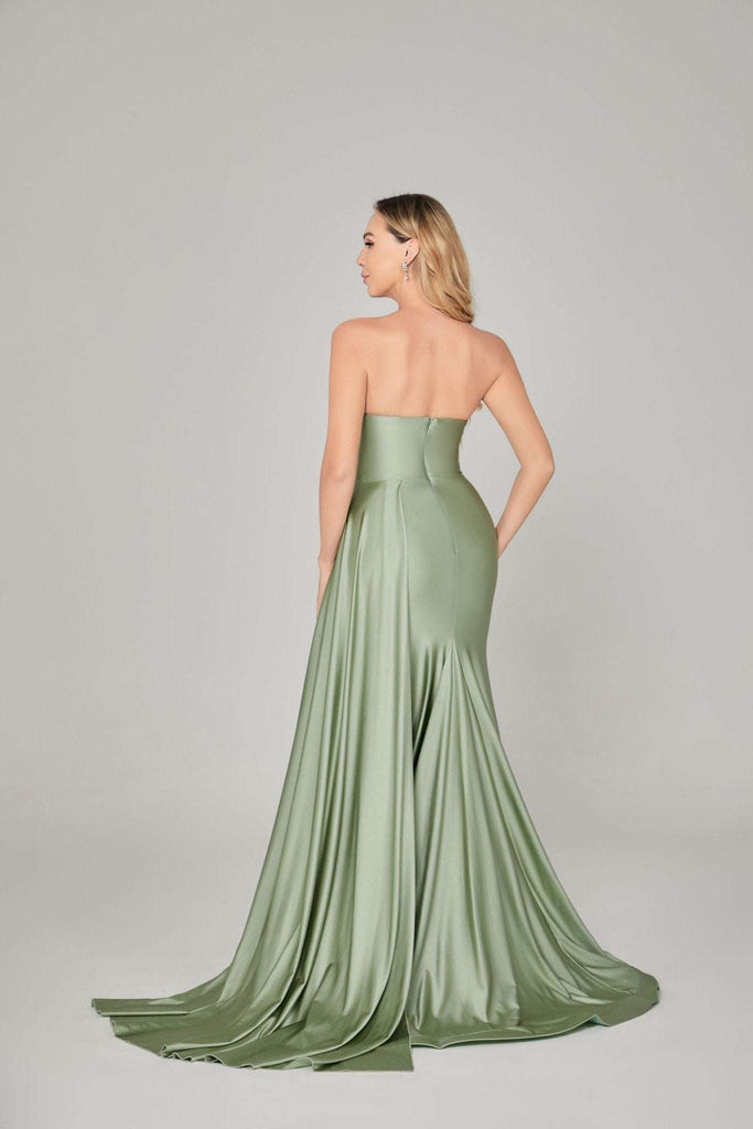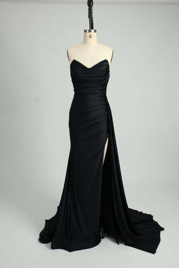 Schwarzes trägerloses Korsett-Abendkleid aus Satin – Sienna