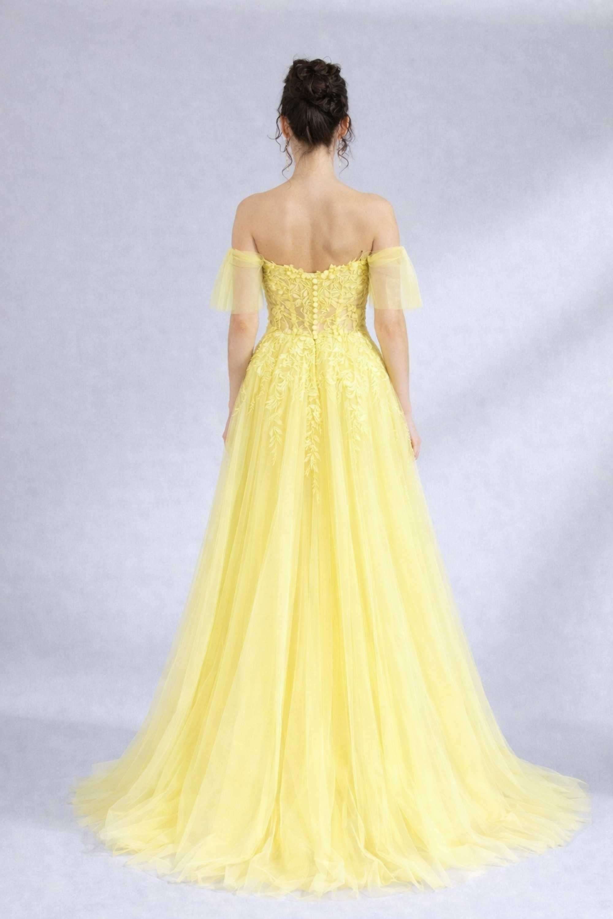 Gelbes YLONA-Tüllkleid mit Korsettoberteil