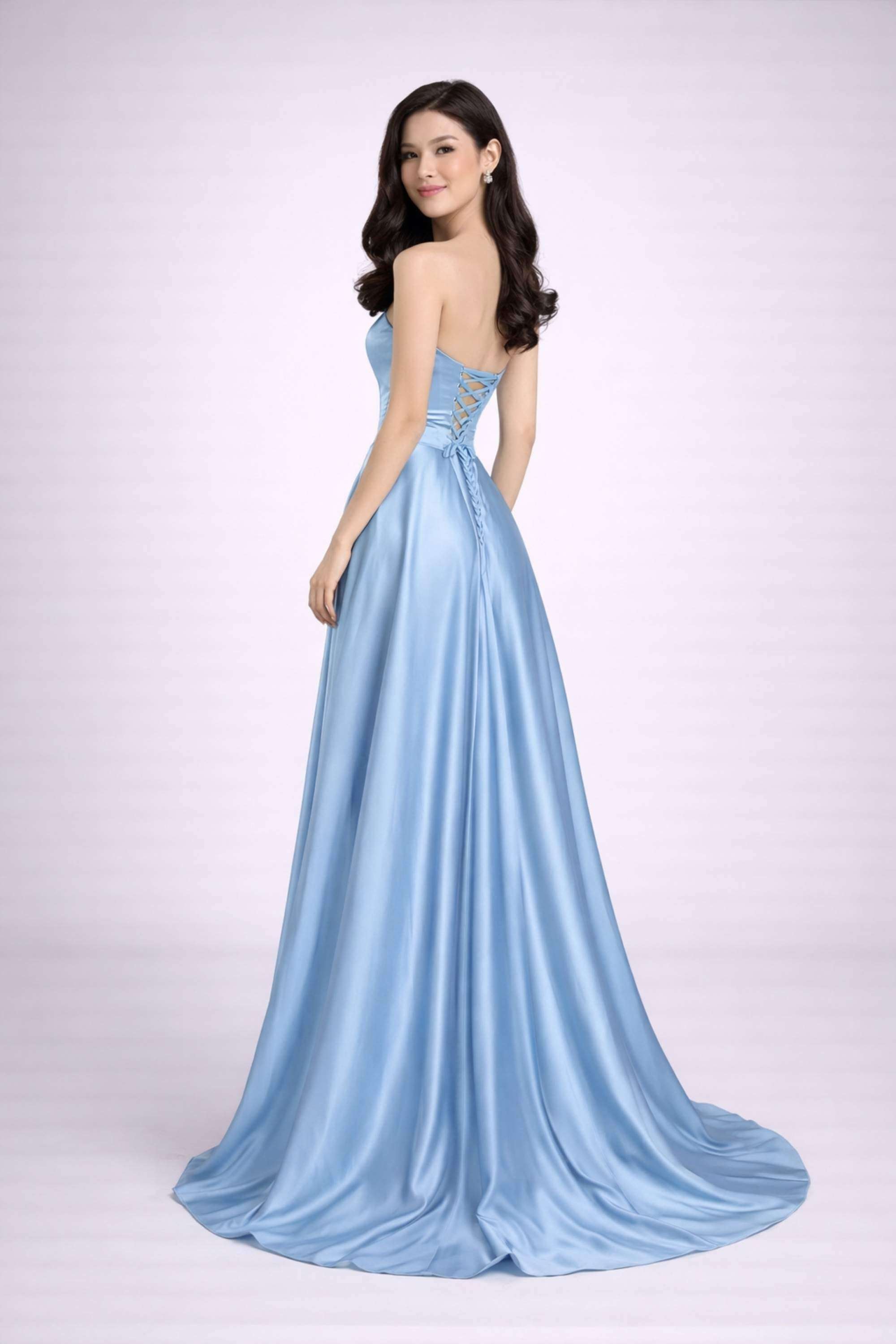 Cette robe bustier met parfaitement en valeur vos épaules et votre décolleté, alliant style intemporel et allure moderne. Son luxueux satin épouse les formes avec fluidité, offrant confort et une silhouette incomparable qui accompagne gracieusement chacun de vos pas.