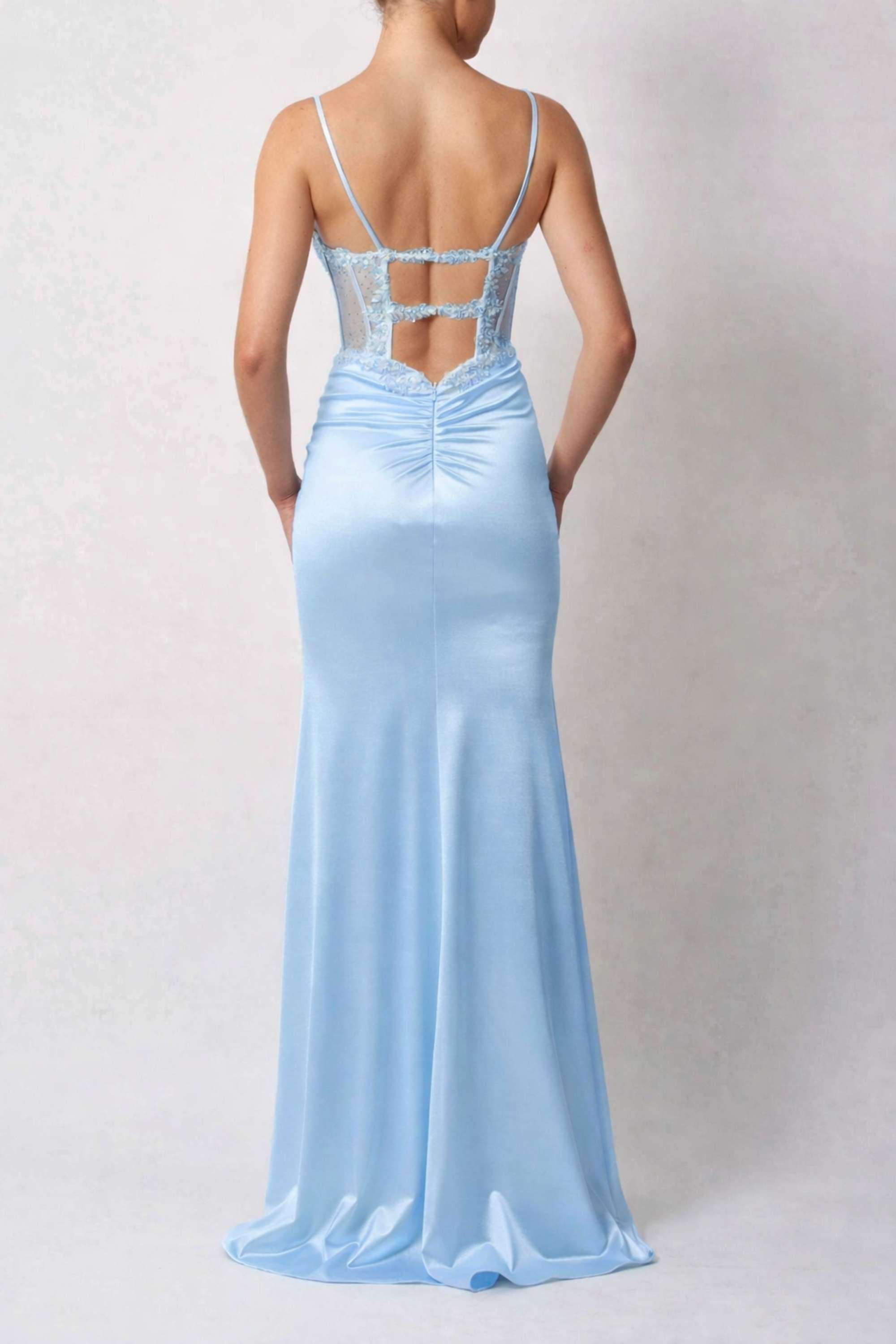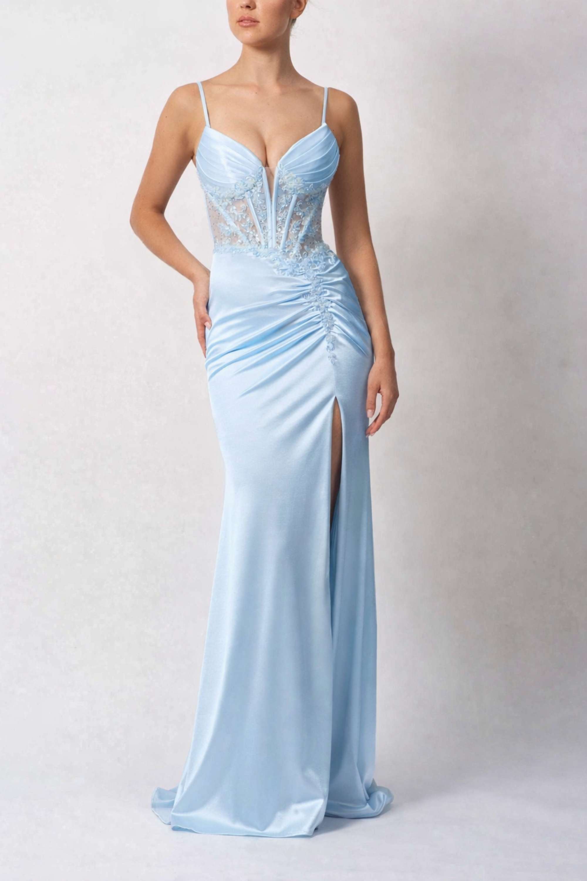 Robe de bal corset bleu ciel élégante avec mascara MC11522