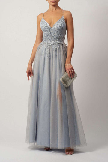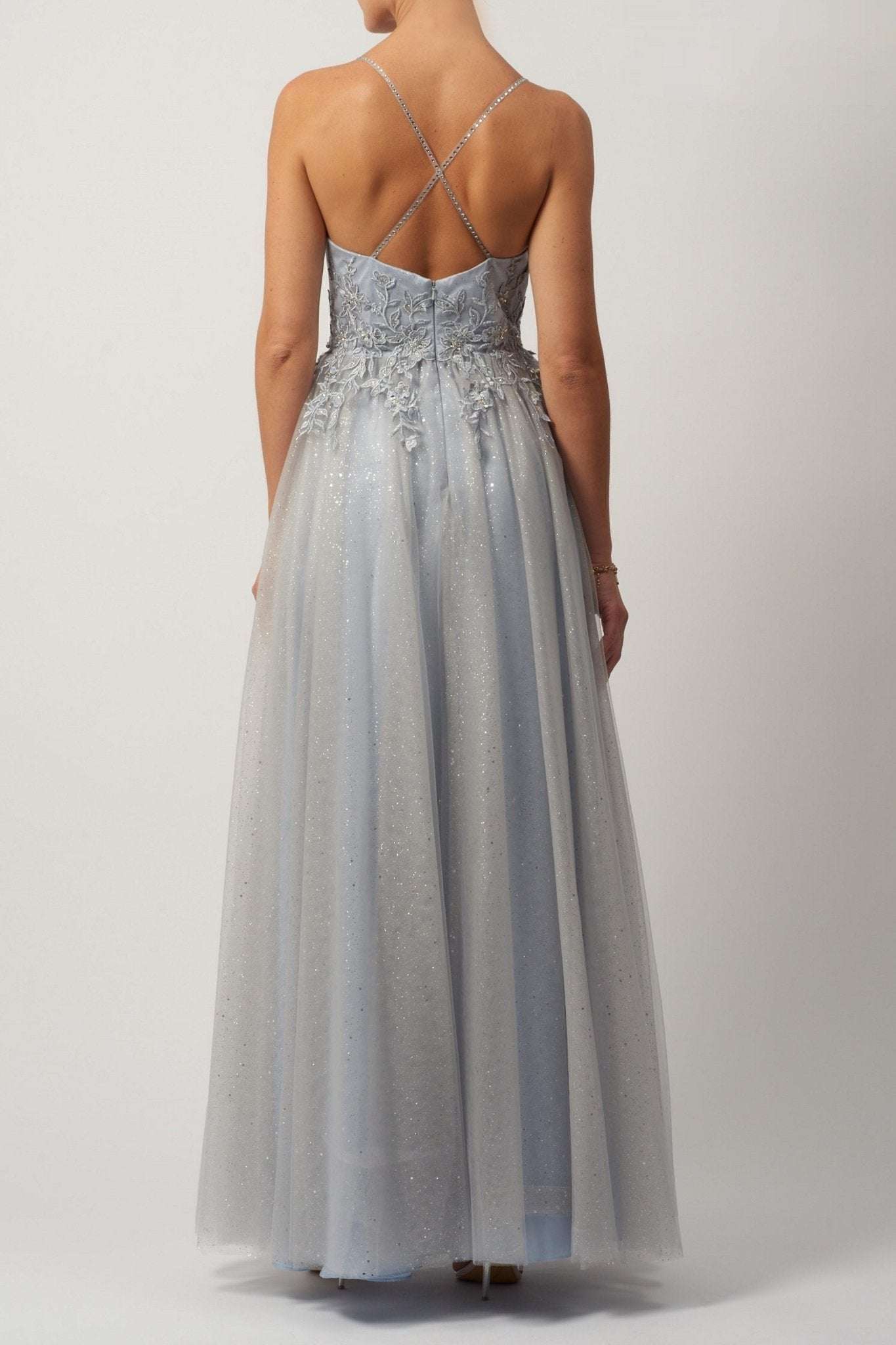 Step into the spotlight with our Misty Blue Glitter Tulle Dress by Mascara London. Designed for those moments that require a touch of elegance, this stunning gown effortlessly blends sophistication with enchantment. The blue glitter tulle fabric creates a magical aura that captures attention at any event, from glamorous balls to cherished weddings.