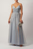 Crafted with a delicate tulle overlay, the dress glistens subtly under the light, highlighting your every movement. This dreamy attire is perfect for bridesmaids who want to radiate charm and elegance, or for proms where making a memorable entrance matters. Its long silhouette flatters all shapes, making it a versatile choice for any special occasion.