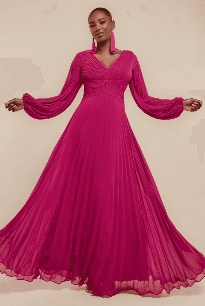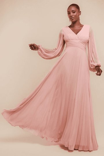 Goddiva Balloon Sleeve Chiffon Maxi Dress in Blush Pink DR2041QZ