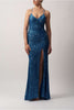 Steele Blue MC186119 sequin strap low back dress