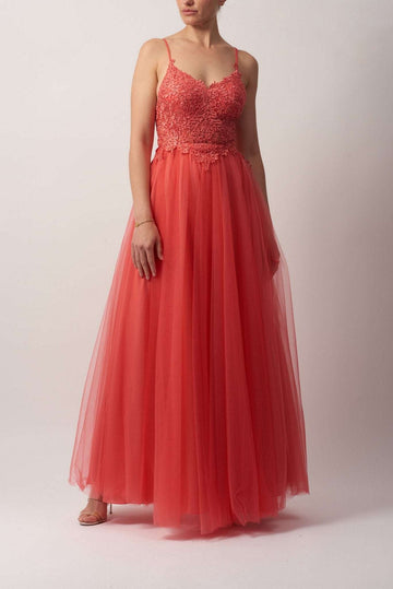 Make a Statement with Our Coral Lace Tulle Gown Sale