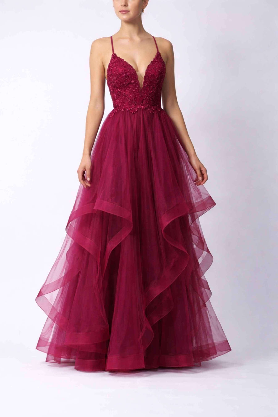 Mascara MC110125 Cross Back Tulle Berry Ballgown