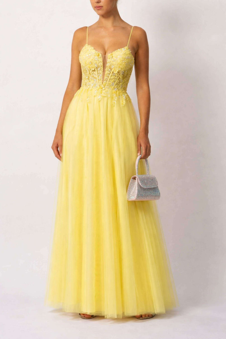 Mascara MC113525 Lemon Tie Back Tulle Prom Dress