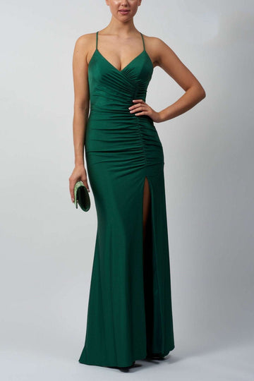 Forest Green Rouched Jersey Tie Back Dress MC213326