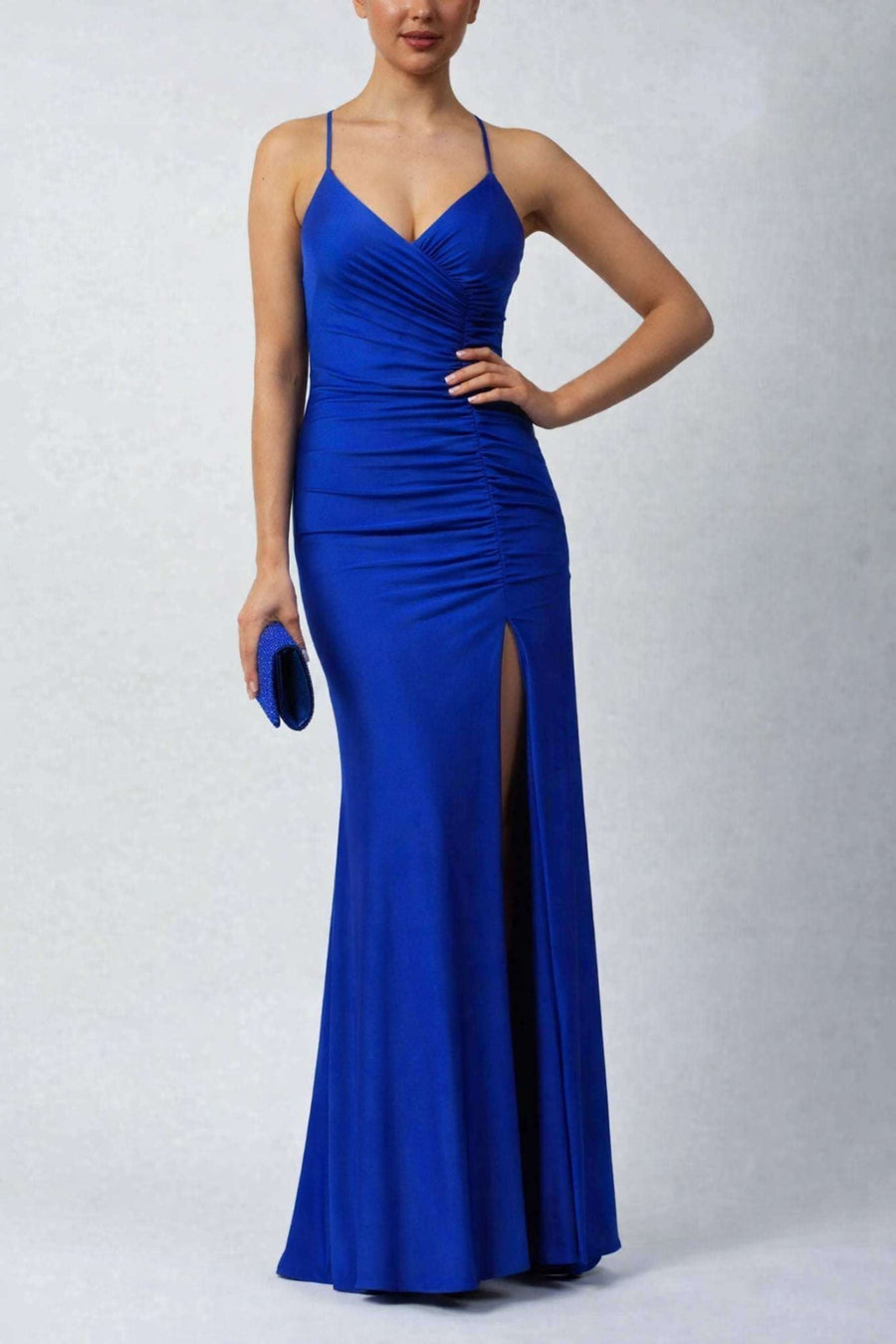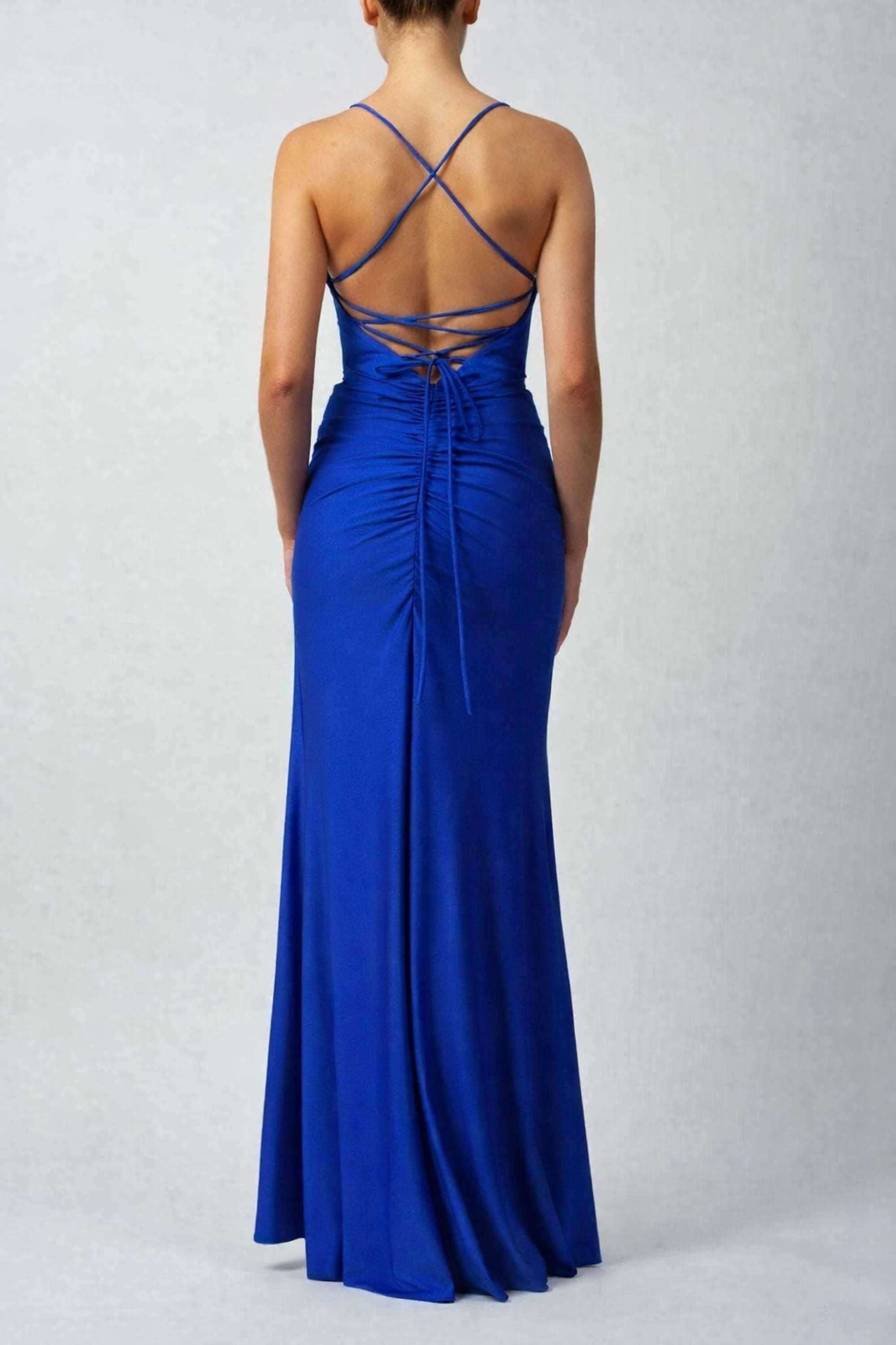 Mascara MC213326 Royal Blue Rouched Jersey Tie Back Dress