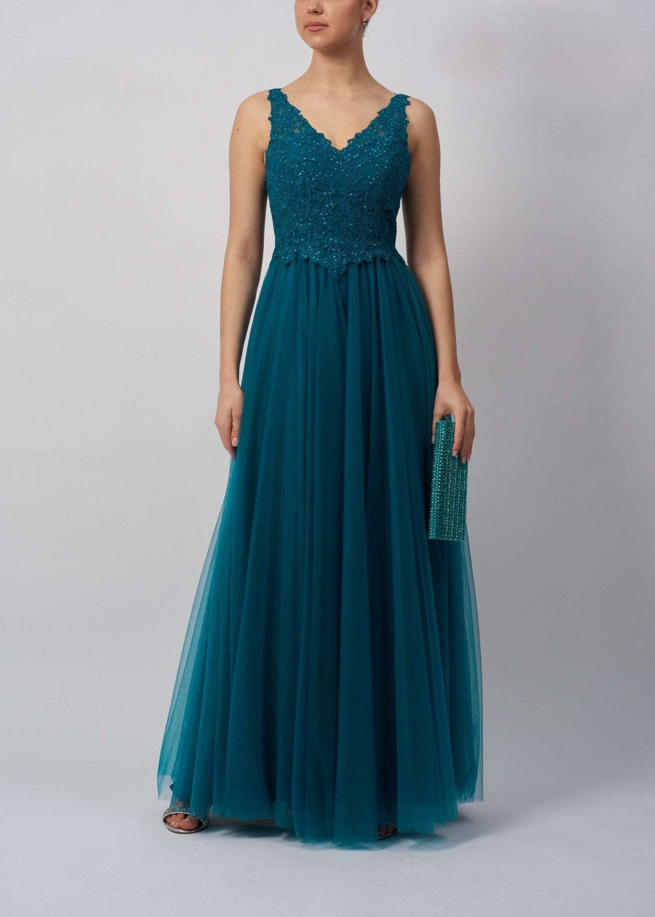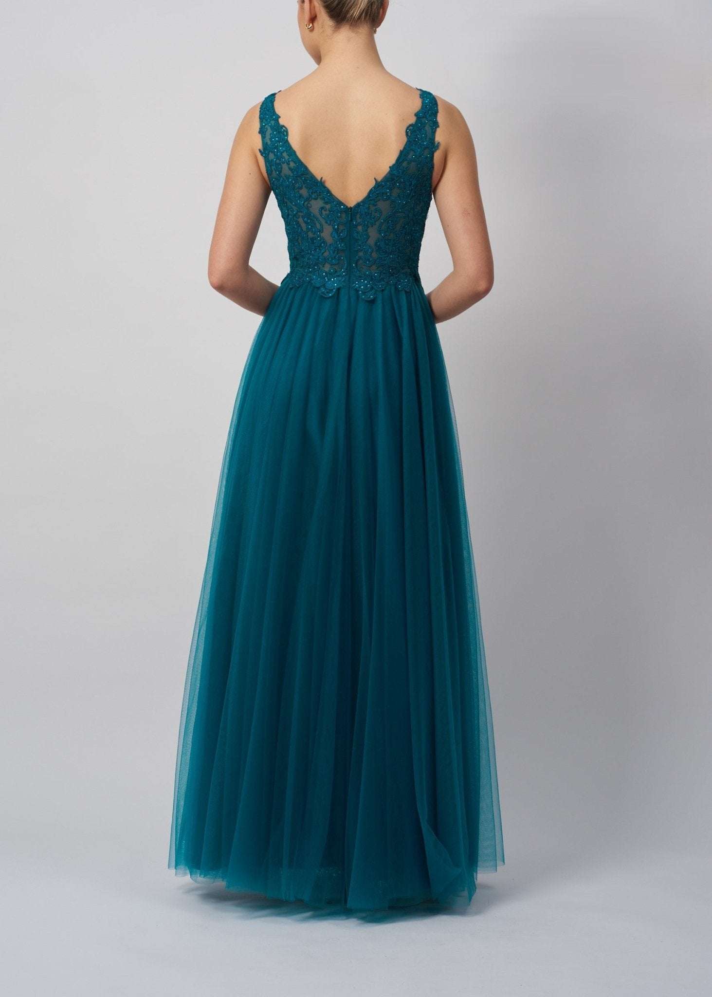 Mascara MC23344 Petrol V-Neck Embroidered Tulle Prom Dress