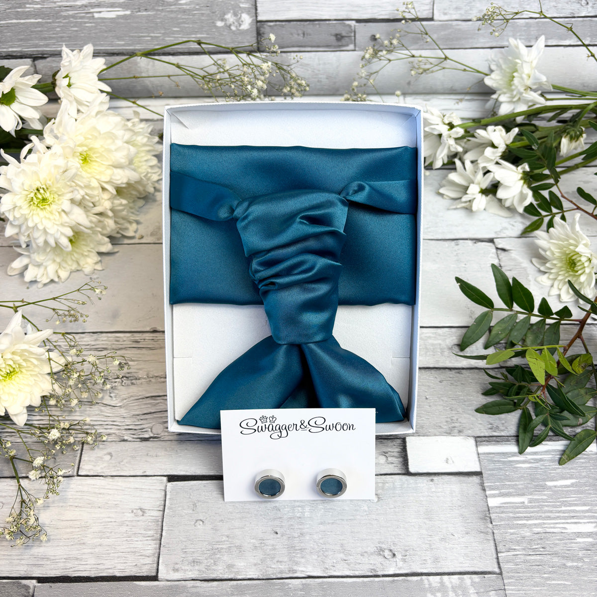 A plain, Peacock coloured wedding cravat, the perfect accessory for the groom or groomsmen on your wedding day!