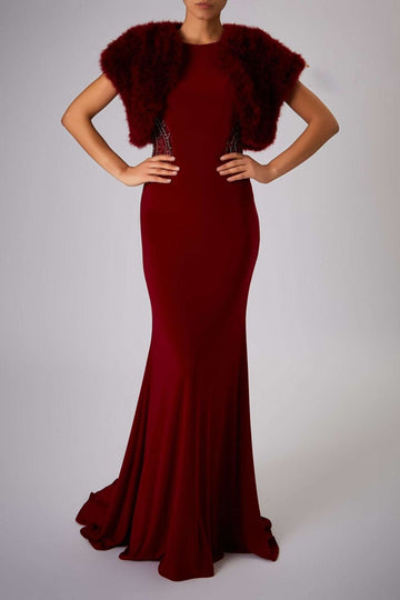 Join countless fashion-forward individuals who have chosen Mascara Eveningwear to complete their most memorable outfits. Add this must-have wine feather ladies shrug to your collection today and experience the transformation it brings to your special occasion attire!
